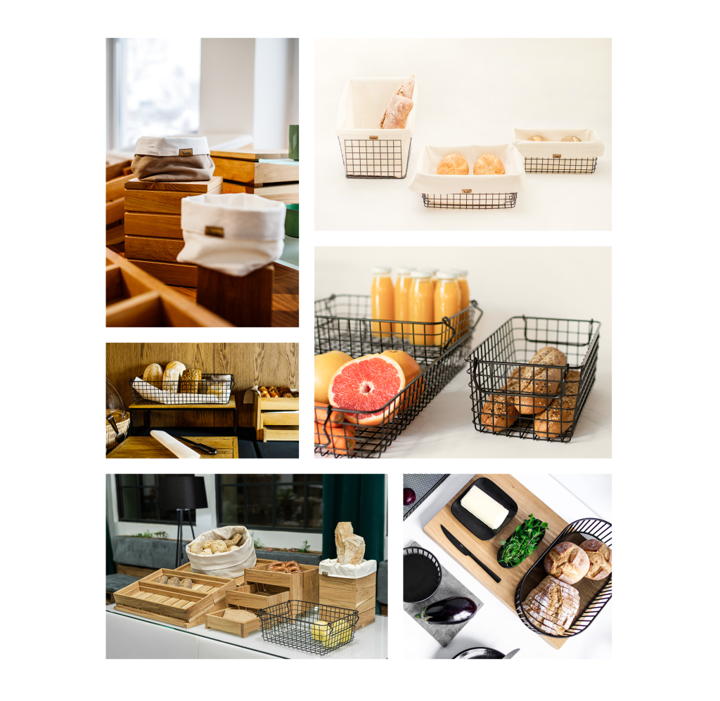 The essential buffet support. Small accessories such as polyrattan baskets and cotton bags help to organize the area that should be impeccably clean.  These smallest elements create the final impression. Therefore, we constantly look for the optimum forms and shapes of the accessories.